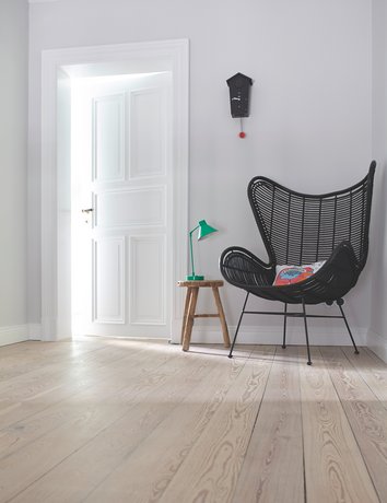3. Anstrich: Der Lack ist gebrauchsfertig und muss nur noch gut aufgerührt werden. Für eine perfekte Oberfläche empfehlen wir einen Voranstrich mit Alpina Klarlack für Parkett & Treppen mit max. 15 – 20 % Wasser verdünnt. Nach der Trocknung diesen leicht in Holzfaserrichtung anschleifen und säubern. Abschließend 2 – 3, bei OSB-Platten 3 – 4 Beschichtungen auftragen.