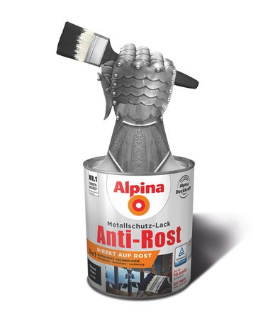 | Untergrund | Eisenmetalle. Nicht-Eisenmetalle nach Untergrundvorbehandlung und Grundierung mit Alpina Spezial-Haftgrund. Der Untergrund muss tragfähig, fest, sauber, trocken und fettfrei sein. Losen Rost mit Drahtbürste entfernen. Zur Ausbesserung von Unebenheiten/Fehlstellen können Sie Alpina Universal-Lackspachtel verwenden. |