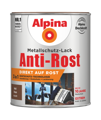 | Untergrund | Eisenmetalle. Nicht-Eisenmetalle nach Untergrundvorbehandlung und Grundierung mit Alpina Spezial-Haftgrund. Der Untergrund muss tragfähig, fest, sauber, trocken und fettfrei sein. Losen Rost mit Drahtbürste entfernen. Zur Ausbesserung von Unebenheiten/Fehlstellen können Sie Alpina Universal-Lackspachtel verwenden. |