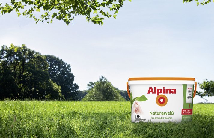 - Alpina Naturaweiß deckt sehr gut mit Deckkraftklasse 1 nach DIN EN 13 300, bei einer Ergiebigkeit von 6,5 m2