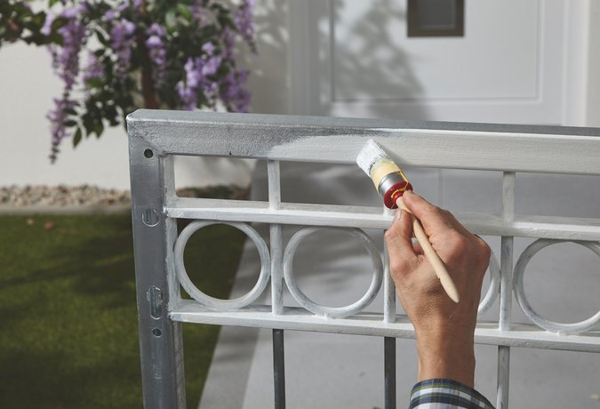 Lack haftet auf Nicht-Eisenmetallen wie z.B. Kupfer, Aluminium oder Zink generell weniger gut als auf Eisenmetallen. Ein Grundieranstrich mit dem Alpina Spezial-Haftgrund sorgt dafür, dass die nachfolgende Lackierung zuverlässig haftet.
